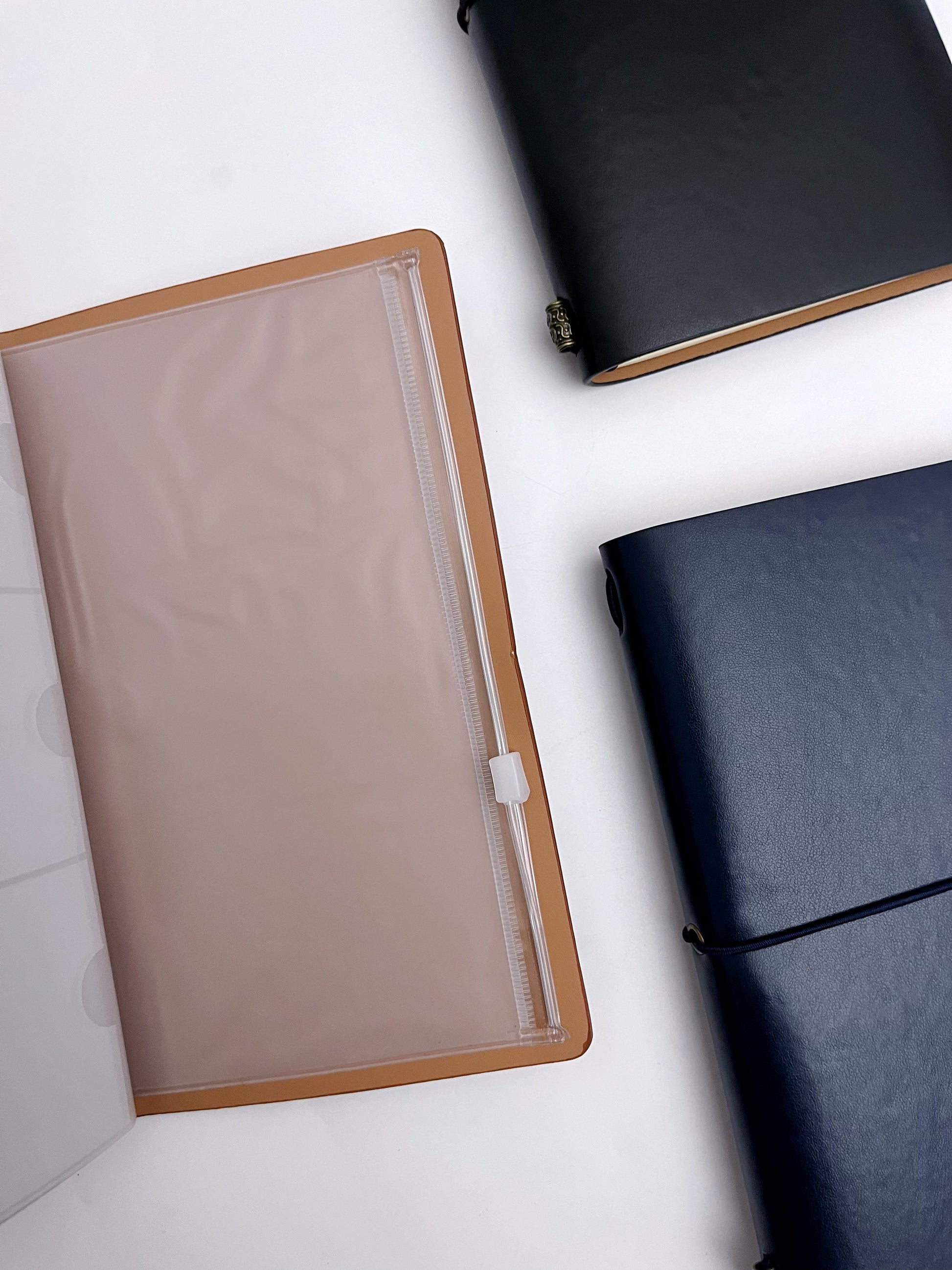 A6 Retro Strap Leather Cover Journal (Lined, Blank Brown Kraft Sheets, PVC envelopes)